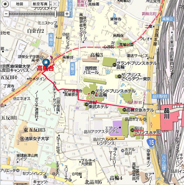 從品川走到高輪台,上圖紅色線段部份就是我們從品川走到高輪台的路線。